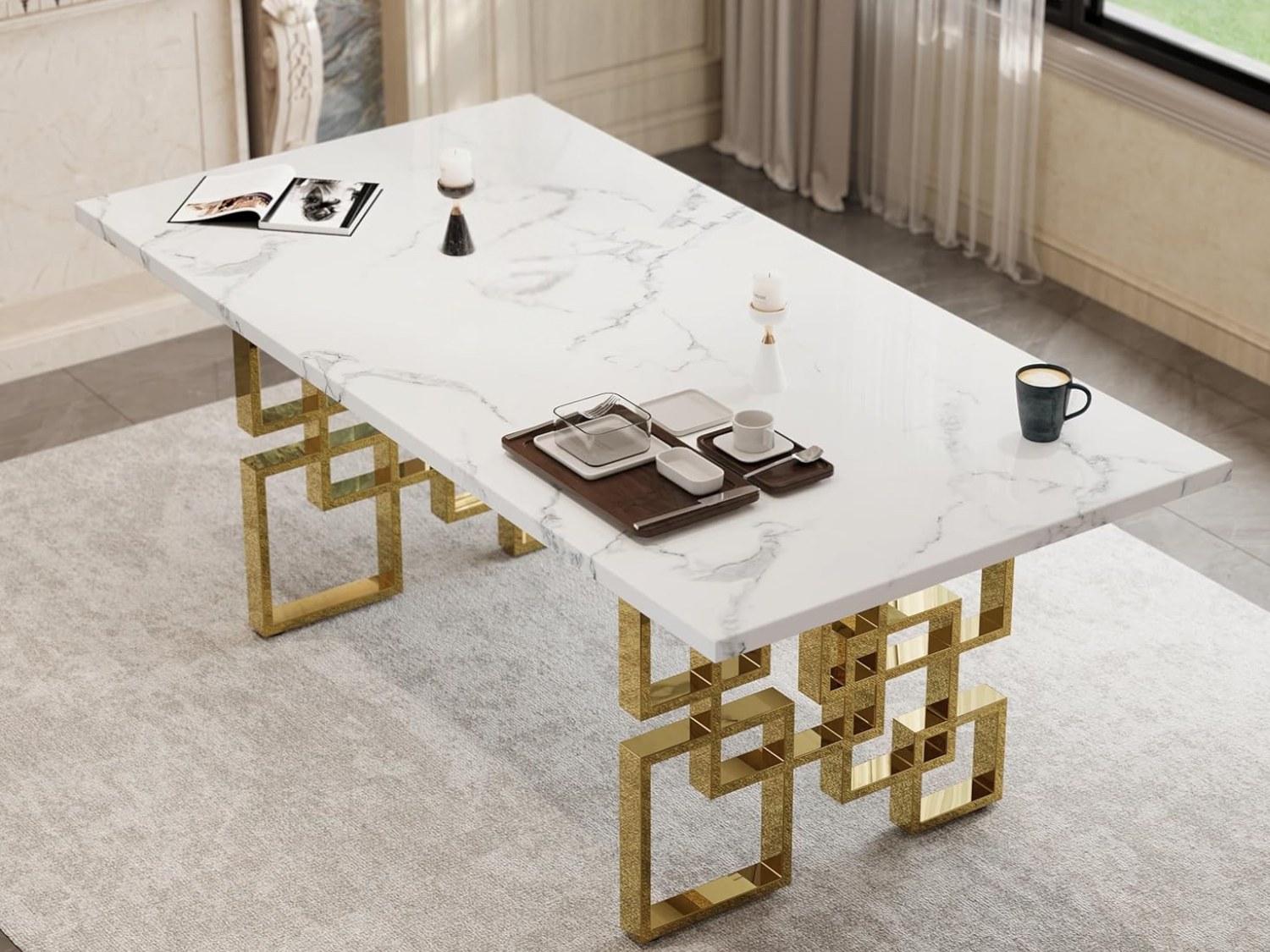 79 Inch Elegant Designer Marble Table with Gold Legs