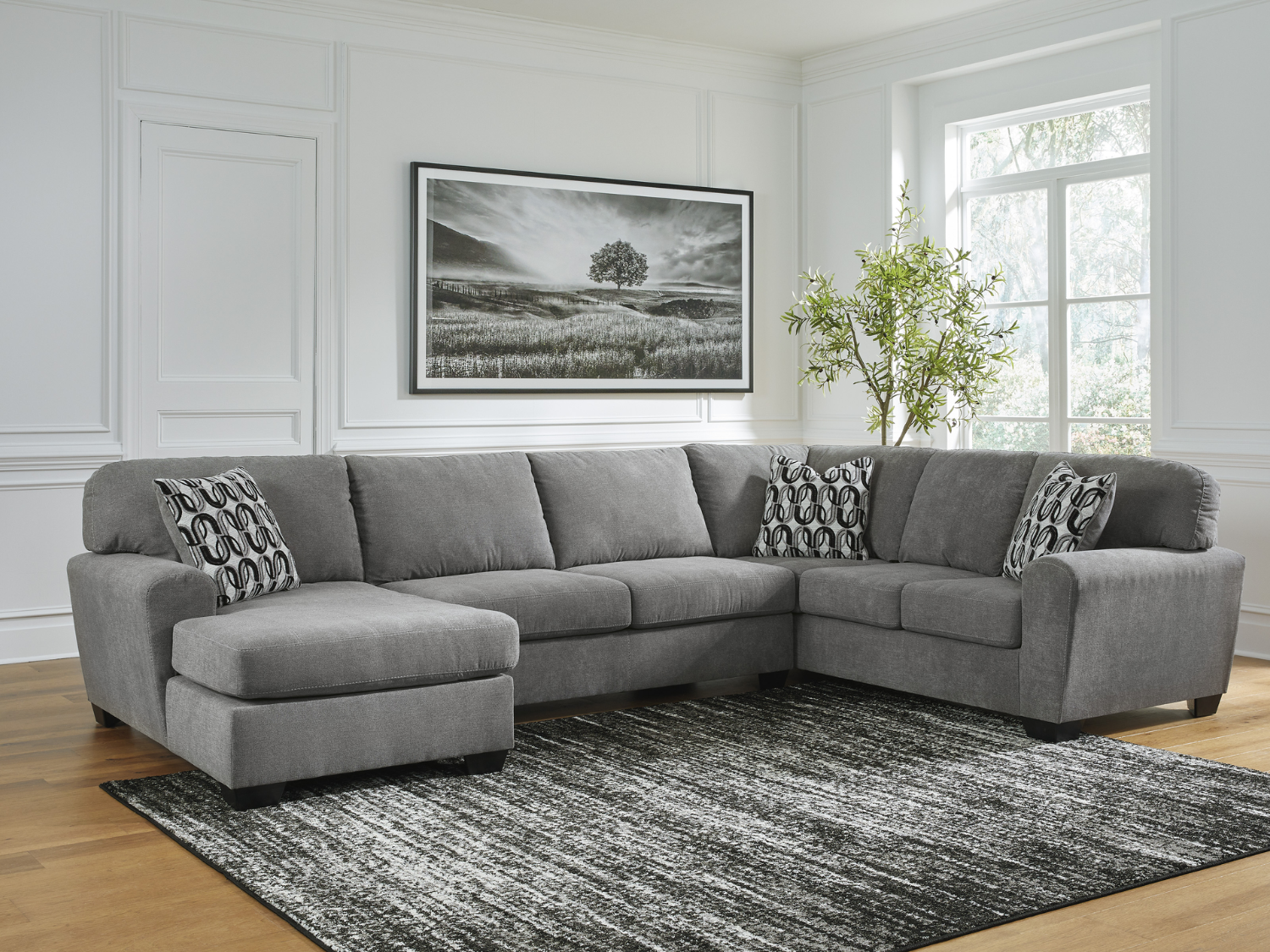 -Includes 3 pieces: left-arm facing corner chaise, armless loveseat and right-arm facing sofa-"Left-arm" and "right-arm" describe the position of the arm when you face the piece
