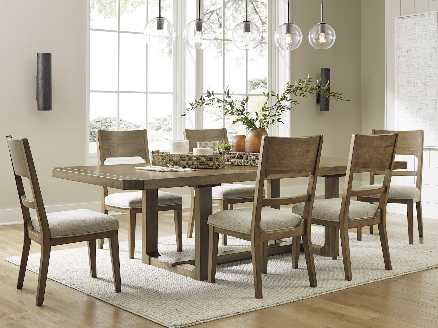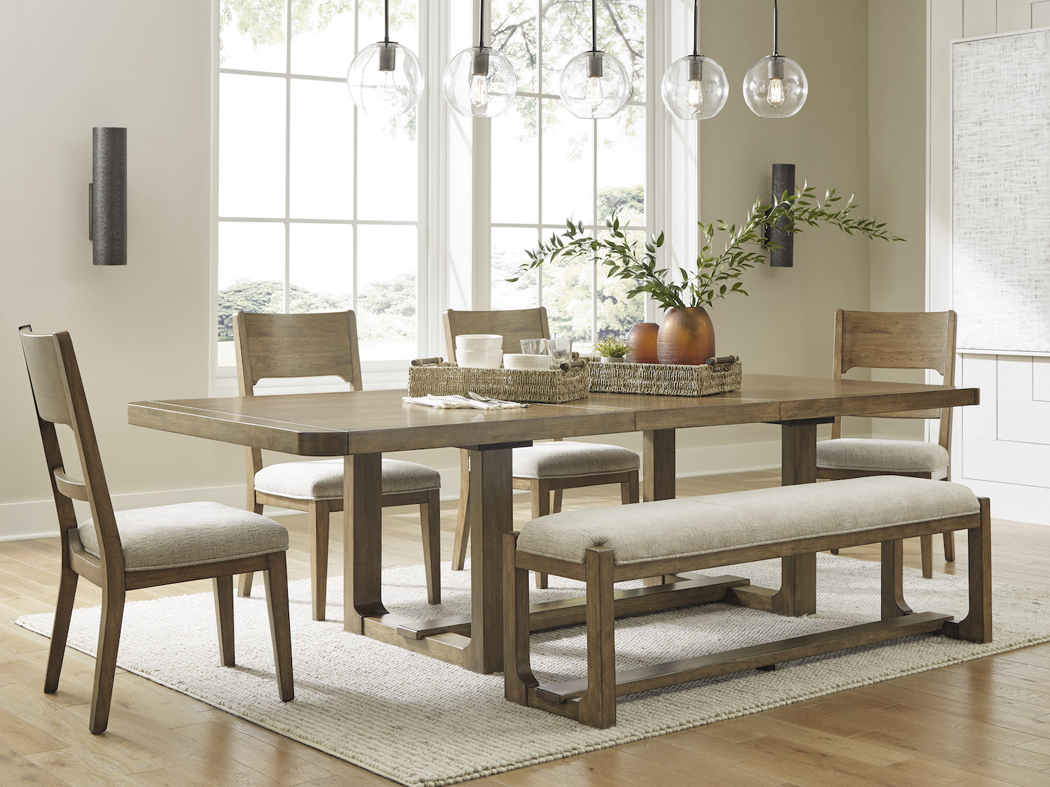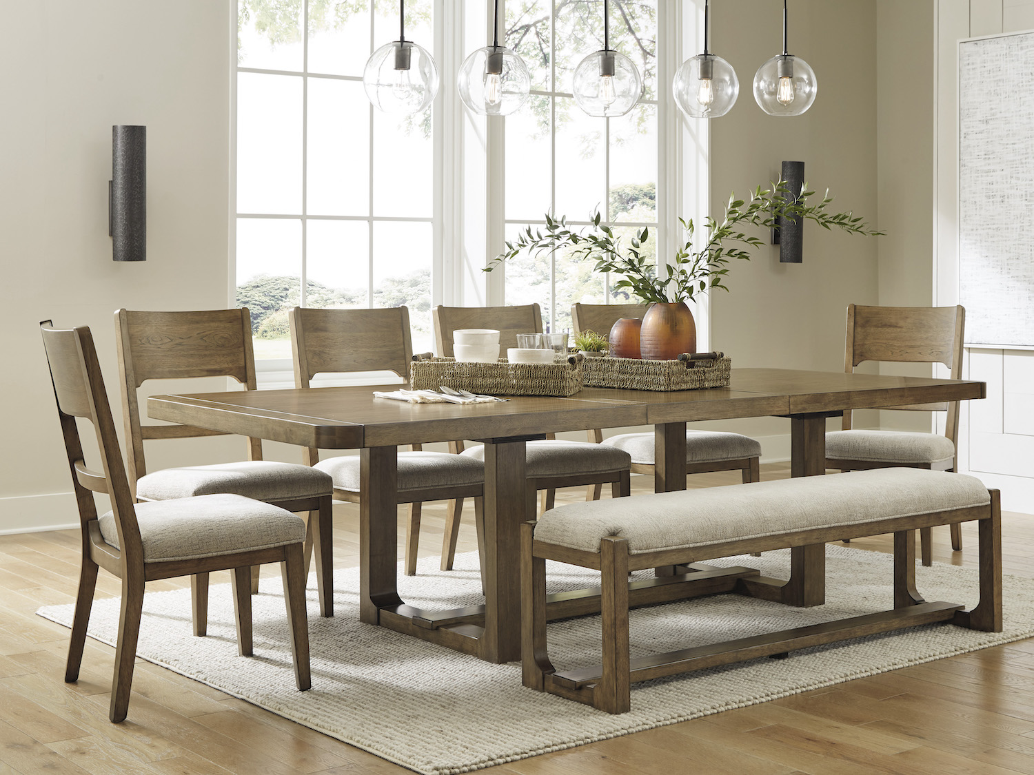 - Price Includes: Table + 4 Chairs + Bench (Additional Chairs & Configuration available)- Made with hardwood solids, hickory veneer and MDF substrates