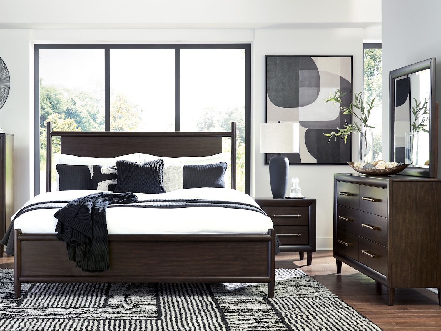 - Price Includes: Queen Bed (Headboard/Footboard/Rails) + Dresser + Mirror + 1 Night Stand (Additional Pieces Sold Separatley)- Made with solid wood frame, mango wood veneer and MDF substrates