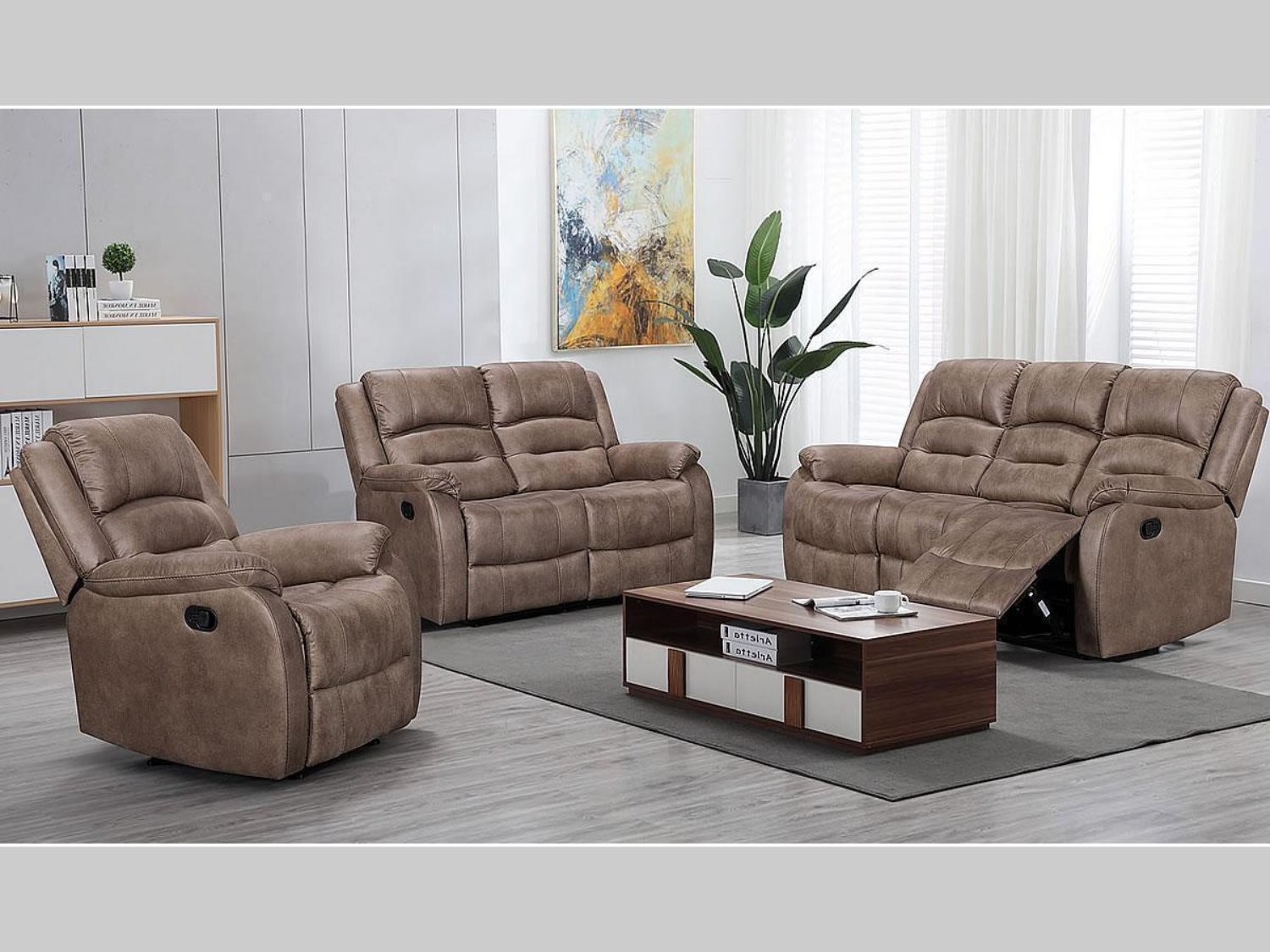 Larissa Fabric Manual Recliner Sofa Set(Caramel)