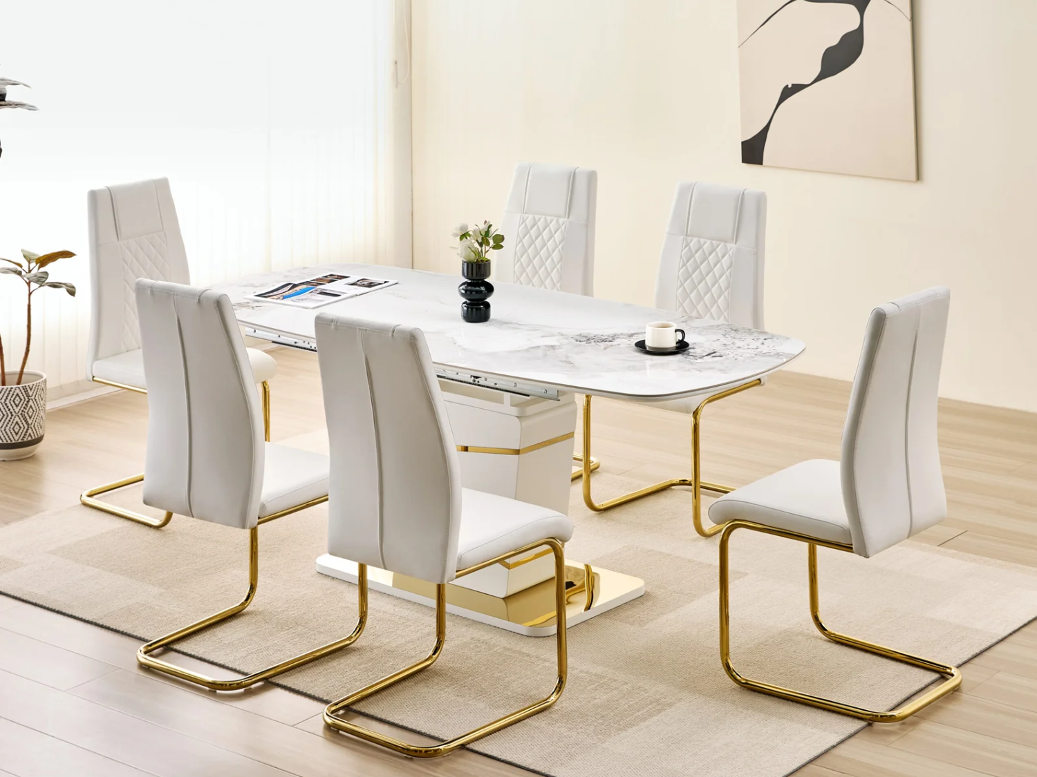 - Includes: Table and 6 Chairs- Faux Marble Top